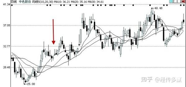 如图所示为中色股份的日K线图。