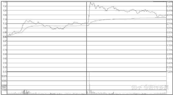 从分时走势图可看出,看江股份股价当天平开,半小时后突然被拉高到7%以上,然后庄家就任由股价自然运行,之后股价逐步回落,但最终收盘时仍上涨4%左右,这表示上方抛压不重。
