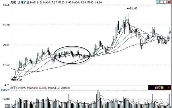 如图4.1所示为西藏矿业的K线图。