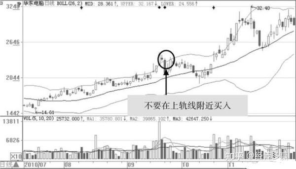 如图3-21所示,散户就不能在BOLL指标的上轨线附近处买入。