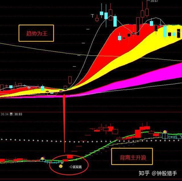 趋势为王的指标配合主升浪背离,与底背离信号共振为最佳的进场位,