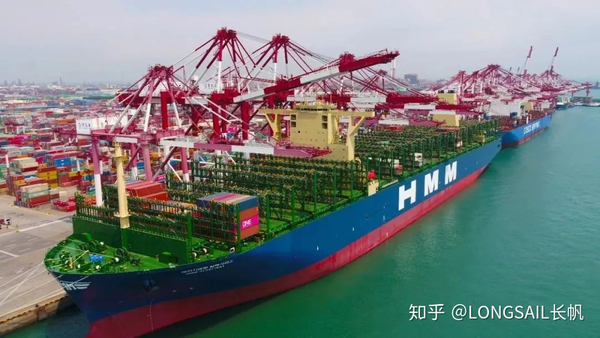 集装箱船“HMM Algeciras”的总吨为228283GT,载重232606DWT,长度为399.9米,船宽61米,型深33.2米,